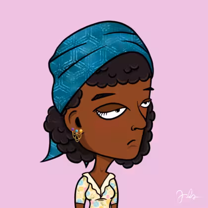 Collection Depressed Citizens Artist Juls Description ART. No team, no project, no future. Depressed Citizens is an urban & existential Art expression on Ordinals. In a parallel universe, "THEI" control us. DC unites against toxic society, encouraging critical thinking. 100% hand made collection that took Juls more than 6 months of daily work. Name Citizen#2854 Origin African descendant Gender Woman Necklace No Necklace Hat Printed head scarf Mustache Beard No beard Glasses No Glasses Earrings Chandelier earring Hair Style Curly Clothes Spring flowers v-neck shirt Tattoo No Tattoo Star Background Without stars