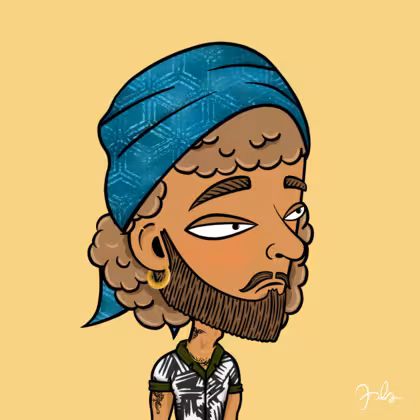 Collection Depressed Citizens Artist Juls Description ART. No team, no project, no future. Depressed Citizens is an urban & existential Art expression on Ordinals. In a parallel universe, "THEI" control us. DC unites against toxic society, encouraging critical thinking. 100% hand made collection that took Juls more than 6 months of daily work. Name Citizen#2133 Origin Asian & Pacific islander Gender Man Necklace Gold layered necklace Hat Printed head scarf Mustache Beard Garibaldis beard Glasses No Glasses Earrings Rook hoop Hair Style Curly Clothes Boardriders shirt Tattoo Dragon tattoo Star Background Without stars