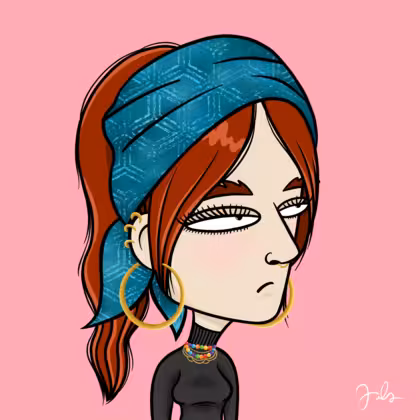 Collection Depressed Citizens Artist Juls Description ART. No team, no project, no future. Depressed Citizens is an urban & existential Art expression on Ordinals. In a parallel universe, "THEI" control us. DC unites against toxic society, encouraging critical thinking. 100% hand made collection that took Juls more than 6 months of daily work. Name Citizen#28 Origin Caucasian non hispanic Gender Woman Necklace Colorful layered necklace Hat Printed head scarf Mustache Beard No beard Glasses No Glasses Earrings Helix ring trio Hair Style High ponytail Clothes Black turtleneck women's sweater Tattoo No Tattoo Star Background Without stars