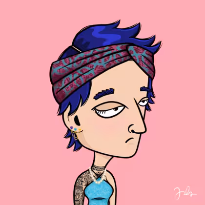 Collection Depressed Citizens Artist Juls Description ART. No team, no project, no future. Depressed Citizens is an urban & existential Art expression on Ordinals. In a parallel universe, "THEI" control us. DC unites against toxic society, encouraging critical thinking. 100% hand made collection that took Juls more than 6 months of daily work. Name Citizen#2603 Origin Caucasian non hispanic Gender Woman Necklace Pearl necklace Hat Printed headband Mustache Beard No beard Glasses No Glasses Earrings Chandelier earring Hair Style Shaggy short Clothes Sky blue halterneck top Tattoo Maya tattoo Star Background Without stars