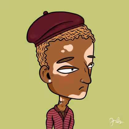 Collection Depressed Citizens Artist Juls Description ART. No team, no project, no future. Depressed Citizens is an urban & existential Art expression on Ordinals. In a parallel universe, "THEI" control us. DC unites against toxic society, encouraging critical thinking. 100% hand made collection that took Juls more than 6 months of daily work. Name Citizen#1930 Origin Unique Gender Man Necklace Gold layered necklace Hat Burgundy beret Mustache Beard No beard Glasses No Glasses Earrings Rook hoop Hair Style Short curly with gel Clothes Burgundy stripe skinny shirt Tattoo Dragon tattoo Star Background Without stars