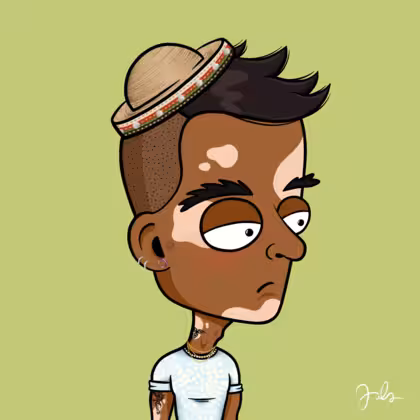 Collection Depressed Citizens Artist Juls Description ART. No team, no project, no future. Depressed Citizens is an urban & existential Art expression on Ordinals. In a parallel universe, "THEI" control us. DC unites against toxic society, encouraging critical thinking. 100% hand made collection that took Juls more than 6 months of daily work. Name Citizen#1584 Origin Unique Gender Man Necklace Gold layered necklace Hat Straw bowler hat Mustache Beard No beard Glasses No Glasses Earrings Upper lobe rings Hair Style Short plane head Clothes I'm cool slim T-shirt Tattoo Dragon tattoo Star Background Without stars