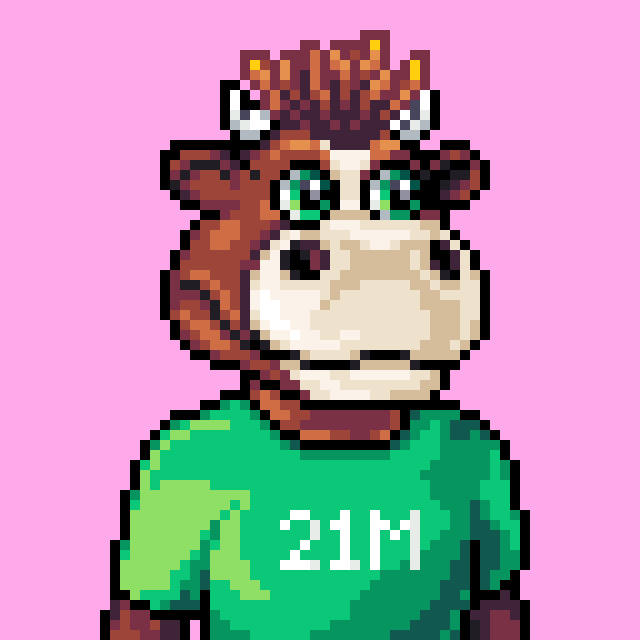- 2100 pixel art Bulls ready for the bull market. 48 color palette. Only on Bitcoin.