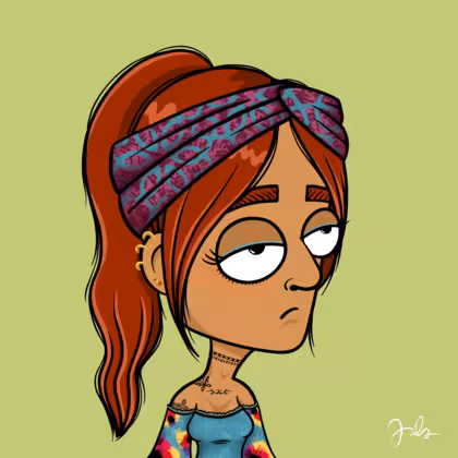 Collection Depressed Citizens Artist Juls Description ART. No team, no project, no future. Depressed Citizens is an urban & existential Art expression on Ordinals. In a parallel universe, "THEI" control us. DC unites against toxic society, encouraging critical thinking. 100% hand made collection that took Juls more than 6 months of daily work. Name Citizen#3255 Origin Unique Gender Woman Necklace Choker Hat Printed headband Mustache Beard No beard Glasses No Glasses Earrings Upper lobe strass Hair Style High ponytail Clothes Abstract flowers blue blouse Tattoo Butterfly tattoo Star Background Without stars