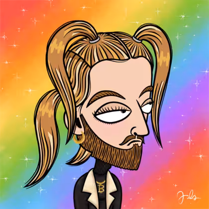 Collection Depressed Citizens Artist Juls Description ART. No team, no project, no future. Depressed Citizens is an urban & existential Art expression on Ordinals. In a parallel universe, "THEI" control us. DC unites against toxic society, encouraging critical thinking. 100% hand made collection that took Juls more than 6 months of daily work. Name Citizen#1990 Origin LGBT-Q+ Gender Non-binary Necklace BTC gold chain Hat No Hat Mustache Beard Garibaldis beard Glasses No Glasses Earrings Small hoop Hair Style Space ponytails Clothes Black turtleneck men's sweater Tattoo No Tattoo Star Background With stars