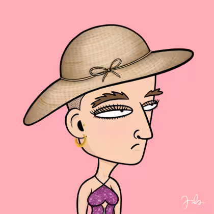 Collection Depressed Citizens Artist Juls Description ART. No team, no project, no future. Depressed Citizens is an urban & existential Art expression on Ordinals. In a parallel universe, "THEI" control us. DC unites against toxic society, encouraging critical thinking. 100% hand made collection that took Juls more than 6 months of daily work. Name Citizen#627 Origin Caucasian non hispanic Gender Woman Necklace No Necklace Hat Floppy sun hat Mustache Beard No beard Glasses No Glasses Earrings Tragus star earring Hair Style Shaved head Clothes Glitter fuchsia halterneck top Tattoo No Tattoo Star Background Without stars