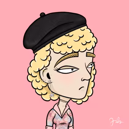 Collection Depressed Citizens Artist Juls Description ART. No team, no project, no future. Depressed Citizens is an urban & existential Art expression on Ordinals. In a parallel universe, "THEI" control us. DC unites against toxic society, encouraging critical thinking. 100% hand made collection that took Juls more than 6 months of daily work. Name Citizen#1328 Origin Caucasian non hispanic Gender Woman Necklace Choker Hat Black beret Mustache Beard No beard Glasses No Glasses Earrings Upper lobe rings Hair Style Curly Clothes Artsy pink shirt Tattoo No Tattoo Star Background Without stars