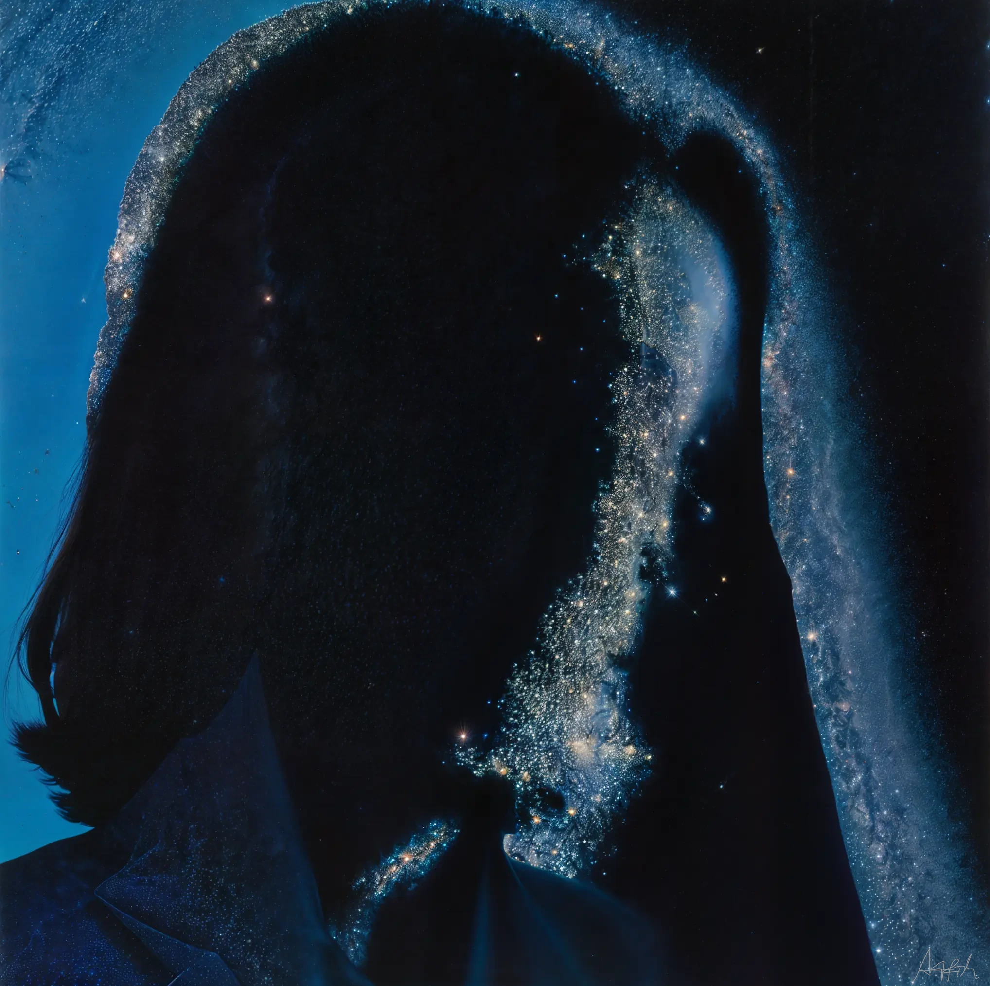 Title Glitterfall Artifishal Notes Falling or ascending—the motion is neither, or both. What is left is a map made of light, an outline of a body that once was. A principle: A silhouette is not an object, but the space where an object is no longer.